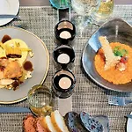 Det erbjuder en frukostbuffé dagligen. Hotellet har restaurangen Vitruv som erbjuder kulinariska läckerheter.